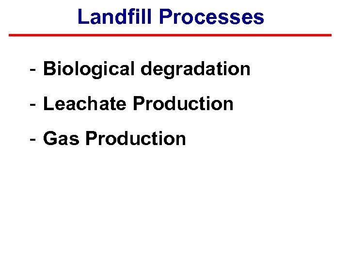 Landfill Processes - Biological degradation - Leachate Production - Gas Production