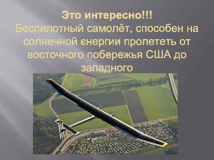 Крупнейшая СЭС находится в пустыне Мохаве в Калифорнии и охватывает 404, 7 га. Единая база ВВС в штате Невада спасла 83000 долларов, используя вместо традиционных источников энергии- солнечную энергию. Хотя Солнце находится на расстоянии более 144 800 000 км от Земли, свету необходимо всего 10 минут для преодоления этого расстояния.