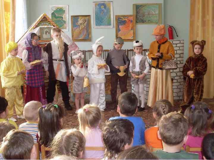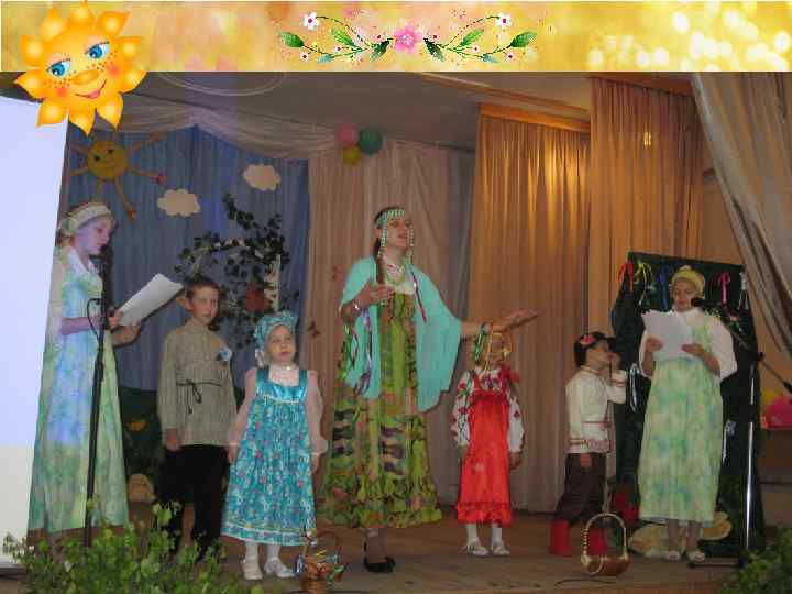 Согласно народным традициям мы подготовили праздник -ярмарку «Зеленая Троица» – с хороводами, песнями, величанием березки, показали сказочную постановку «Как овечка лучшей доли искала» .