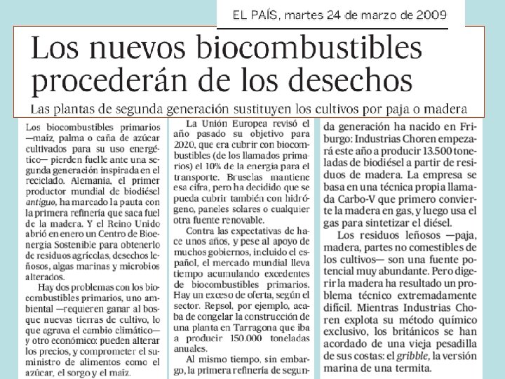 Bioetanol: Prodúcese a partir do azucre, o amidón ou a celulosa. Ten un carácter renovable e presenta unha clara vantaxe na redución de emisións de CO 2. I. E. S. Otero Pedrayo. Ourense