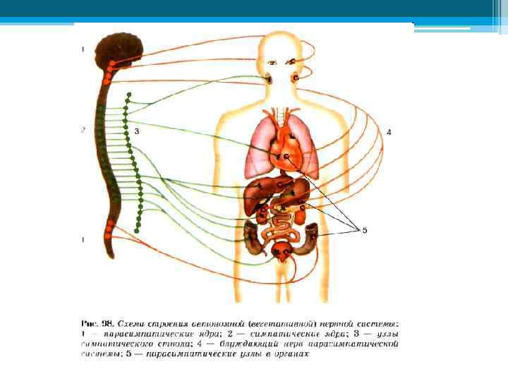 Органы Сердце Артерии Кишечник Печень Потовые железы Слюнные, слезные железы Зрачок Бронхи Мышцы, поднимающие волосы Количество сахара в крови Потребление кислорода Возбуждение симпатической НС "Ты испугался…" ЧСС Диаметр, АД Перистальтика Расслабление желчных протоков Секрецию Диаметр, облегчается дыхание Сокращаются, волосы "встают дыбом" Возбуждение парасимпатической НС "Ты отдыхаешь…" ЧСС Диаметр, АД Перистальтика Сокращение желчных протоков Не влияет Секрецию Диаметр Расслабляются