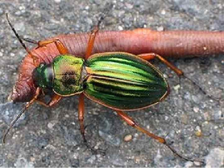 • Як дорослі жужелиці, так і їх личинки за своєю природою є хижаками, що живляться різними комахами, дощовими черв’яками і равликами. Що цікаво — коли здобичі багато, жужелиці входять у мисливський азарт, у результаті чого вбивають жертв більше, ніж можуть з’їсти.