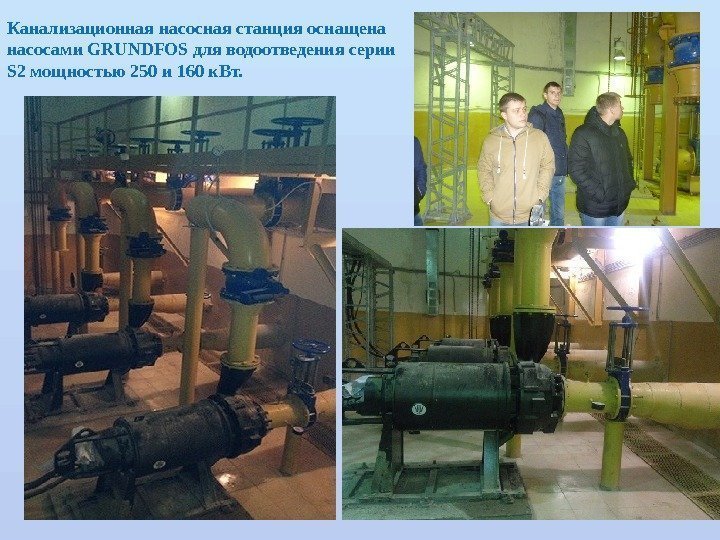 Канализационная насосная станция оснащена насосами GRUNDFOS для водоотведения серии S 2 мощностью 250 и 160 к. Вт.