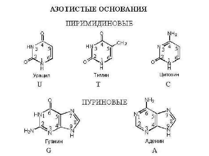 Нуклеиновые кислоты ДНК РНК аденин гуанин цитозин тимин урацил
