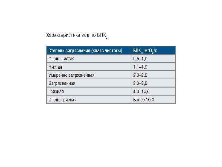 Растворенный кислород Поступление кислорода в водоем происходит путем растворения его при контакте с воздухом (абсорбции), а также в результате фотосинтеза водными растениями. Содержание растворенного кислорода зависит от температуры, атмосферного давления, степени турбулизации воды, минерализации воды и др. В поверхностных водах содержание растворенного кислорода может колебаться от 0 до 14 мг/л. В артезианской воде кислород практически отсутствует.