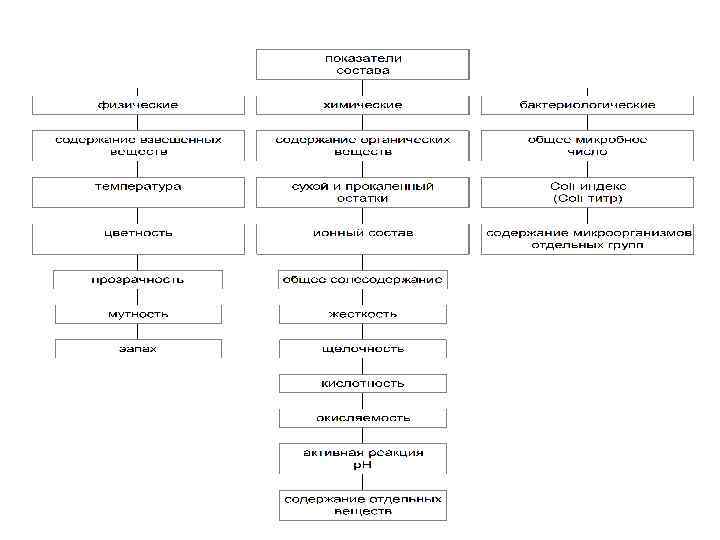 Спектр органических примесей очень широк: ♦ группа растворенных примесей: гуминовые кислоты и их соли гуматы натрия, калия, аммония; некоторые примеси промышленного происхождения; часть аминокислот и белков; ♦ группа нерастворенных примесей: фульвокислоты (соли) и гуминовые кислоты и их соли гуматы кальция, магния, железа; жиры различного происхождения; частицы различного происхождения, в том числе микроорганизмы.