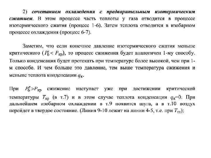 3) изотермическим сжатием с последующим адиабатным расширением до конечного давления Ро. с. Из диаграммы видно, что чем выше давление предварительного (изотермического) сжатия, тем большую долю теплоты сжижения qож можно отвести при температуре окружающей среды То. с. Можно представить себе такой процесс, когда вся теплота qож отводится при То. с. Для этого газ изотермически необходимо сжать до такого давления Р 11 (процесс 1 -11), чтобы при адиабатном его расширении до Ро. с получить жидкость с параметрами т. 3 (процесс 11 -3). Чтобы получить твердую фазу, газ необходимо сжимать до давления Р 12, с тем, чтобы при адиабатном расширении получить параметры т. 10 (т. 5). В этом способе вся работа сжижения lож=e 3 -e 1=e 11 -e 1 идет только на сжатие воздуха. Но чтобы реализовать этот метод, нужны сверхвысокие давления. Для воздуха, например, это давление превышает 45 ГН/м 2 (45000 МПа), что реализовать нереально. Поэтому для воздуха такой метод неприменим. Этот способ сжижения применяется для тех газов, у которых Ткр близка То. с (например, СО 2), т. е. в установках работающих в области холодильной техники (а не криогеники).