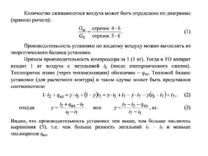 Рабочие процессы в установке Капицы аналогичны предыдущим: 1 -2 – изотермическое сжатие; 2 -8 – охлаждение в регенераторе; в т. 8 – разделение потоков (в детандер М 92 -95 %); 8 -9 – расширение в детандере; 8 -3 – охлаждение и сжижение оставшейся части (1 -М) воздуха; 3 -4 - дросселирование этого воздуха; 4 -56 – разделение фаз; 6 -10 -7 – подогрев сбрасываемого воздуха.