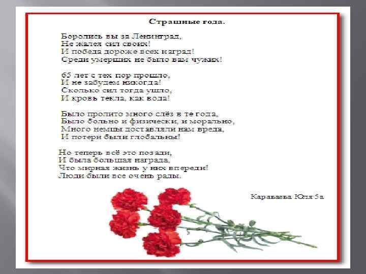 Я говорю с тобой под свист снарядов, Угрюмым заревом озарена. Я говорю с тобой из Ленинграда, Страна моя, печальная страна. Мы выйдем без цветов, в помятых касках, В тяжелых ватниках, в промерзших полумасках, Как равные приветствуя войска. 1941 год Ольга Бергольц