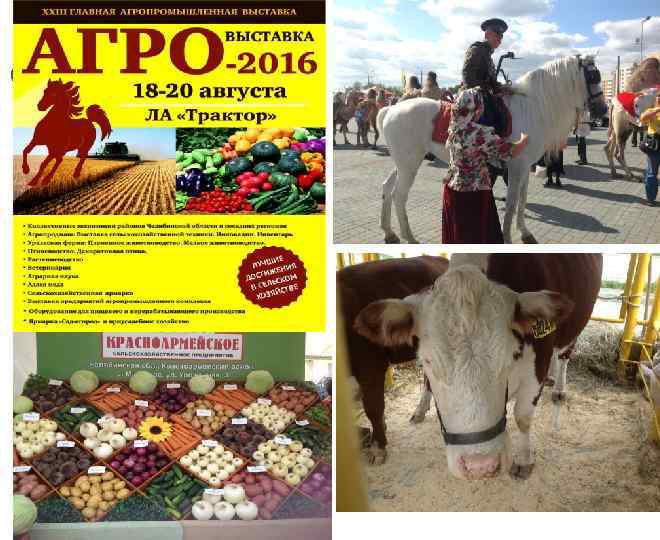 Ежегодная выставка-ярмарка «АГРО» в Челябинске С 18 по 20 августа 2016 года в г. Челябинске прошла очередная универсальная выставка-ярмарка «АГРО-2016» . У участников выставки «АГРО-2016» появилась уникальная возможность наладить деловые контакты как с оптовыми покупателями, так и с конечными потребителями, реализовать свою продукцию, ознакомиться с последними тенденциями и новинками в различных сферах промышленного производства, товаров и услуг. В рамках проведения выставки обсуждались актуальные вопросы развития сельскохозяйственной отрасли в формате «круглых столов» с представителями органов власти, общественных организаций, товаропроизводителей, в т. ч. по экологическим вопросам.
