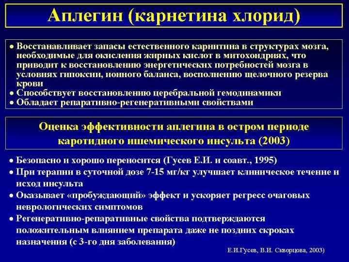 Глиатилин (Церепро) Центральный холиностимулятор в состове которого содержится 40. 5% метоболически защищенного холина. Обеспечивает синтез ацетилхолина и фосфатидилхолина в нейрональных мембранах, улучшает кровоток и усиливает метаболические процессы в ЦНС, активирует ретикулярную формацию, увеличивает линейную скорость кровотока 1 гр/сутки в/м или Вв 3 раза в день 10 -20 дней, затем 0. 4 г. 3 раза в сутки