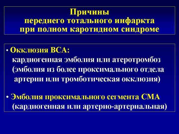 Клиническая картина кардиоэмболического инсульта • Внезапное начало • Быстрое появление и нарастание симптоматики • Возникновение симптомов на фоне мерцательной аритмии • Обязательное наличие кардиогенного источника эмболии! • Очаги более 15 мм на МРТ (КТ)