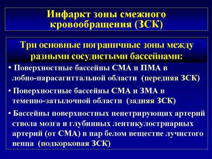 По локализации бассейна пораженной артерии 1. Бассейн внутренних сонных артерий (передние и средние мозговые артерии) 2. Бассейн позвоночных артерий (основная артерия, задние мозговые артерии и их ветви)