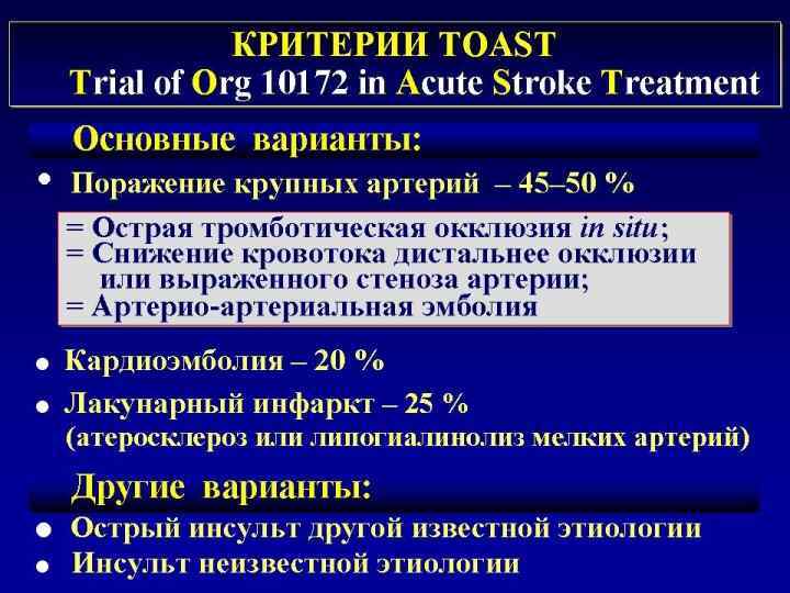 КОНЦЕПЦИЯ ГЕТЕРОГЕННОСТИ ИШЕМИЧЕСКОГО ИНСУЛЬТА Интракраниальный атеросклероз Эмбологенная каротидная бляшка Бляшка дуги аорты Кардиогенный эмбол Микроангиопатия Каротидный стеноз с редукцией потока Мерцательная аритмия Поражение клапанов сердца Тромб в левом желудочке