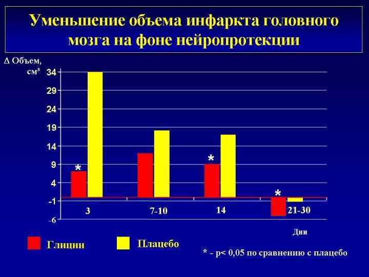 Эффекты Глицина Тормозное нейротрансмиттерное действие – уменьшение дисбаланса между возбуждающими и тормозными нейротрансмиттерными системами Общие метаболические эффекты – Универсальный конъюгат низкомолекулярных токсичных соединений – продуктов ишемического каскада Williams R. New York 1963; 368 -404. Lavretskaya E. F. Moscow 1985; 1 -55.