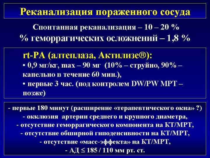 Терапия, улучшающая перфузию при ишемическом инсульте • Тромболитические препараты • Антикоагулянты • Антиагреганты • Гемодилюция и гиперволемия • Вазопрессоры • Эндоваскулярный механический тромболизис • Ангиопластика и стентирование • Операции