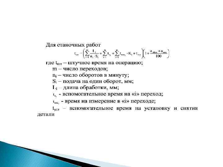 Организация подготовки исходных данных. Исходные данные для расчета норм в общем случае включают: - информацию об изготовляемых изделиях (деталях); - состав технологической операции (переходы); - описание организационно-технические условия выполнения операций; - информацию об исходной и промежуточной заготовке; - технологические режимы обработки; - нормативы времени; - справочные данные для расчета трудоемкости, расценок.