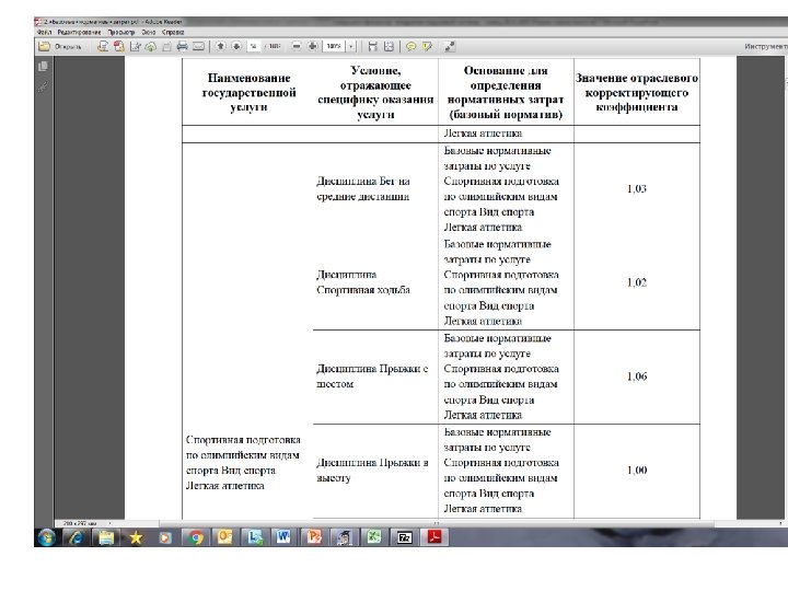 Пример - Базовый норматив затрат Минспорта РФ на оказание услуги по спортивной подготовке по олимпийскому виду спорта, хоккей, в разрезе этапов Наименование государственной услуги 1 Базовый норматив затрат, непосредственно связанных с Базовый норматив затрат на общехозяйственные нужды, Базовый норматив руб Этап спортивной оказанием государственной услуги, затрат на руб. подготовки оказание услуги, руб. ПН ОТ 1 МЗ ИНЗ КУ СНИ СОЦДИ УС ТУ ОТ 2 З Этап высшего спортивного мастерства Этап Спортивная совершенствов подготовка ания спортивного по олимпийски мастерства м видам Тренировочны спорта - й этап (этап хоккей спортивной специализации) Этап начальной подготовки 2 3 4 5 6 7 8 9 10 12=1+2+3+4+5 +6+7+8+9+10+ 11 11 57 471, 76 117 101, 00 376 600, 00 5 376, 13 1 841, 13 849, 22 89, 65 0, 00 38 314, 50 - 597 643, 39 34 957, 89 89 740, 00 540 550, 00 2 861, 33 979, 90 451, 98 47, 71 0, 00 23 305, 26 - 692 894, 08 14 736, 35 79 057, 80 629 200, 00 1 033, 87 354, 06 163, 31 17, 24 0, 00 9 824, 23 - 734 386, 87 4 093, 43 - 159 579, 66 6 140, 14 19 064, 86 129 900, 00 251, 29 86, 06 39, 69 4, 19 0, 00