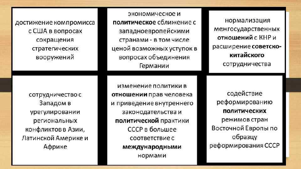 Задачи перестройки: • Предложенный Горбачевым новый курс предполагал модернизацию советской системы, внесение структурных и организационных изменений в хозяйственные, социальные, политические и идеологические механизмы. • В новой стратегии особое значение приобретала кадровая политика, которая выражалась, с одной стороны, в борьбе с негативными явлениями в партийно-государственном аппарате (коррупцией, взяточничеством и др. ), с другой стороны, в устранении политических противников Горбачева и его курса (в московской и ленинградской партийных организациях, в ЦК компартий союзных республик).