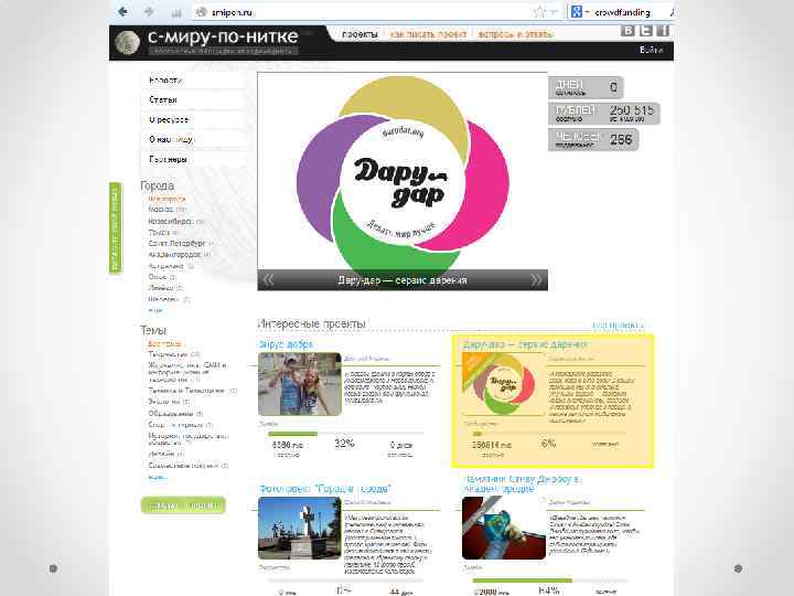 У каждого проекта есть видео-обращение, в котором Организатор рассказывает о Целях проекта и Планах по их достижению Под видео есть социальные кнопки: один клик, и вы рассказали о проекте своим друзьям Об Авторе есть подробная информация с прямыми контактами. Вы всегда можете с ним связаться