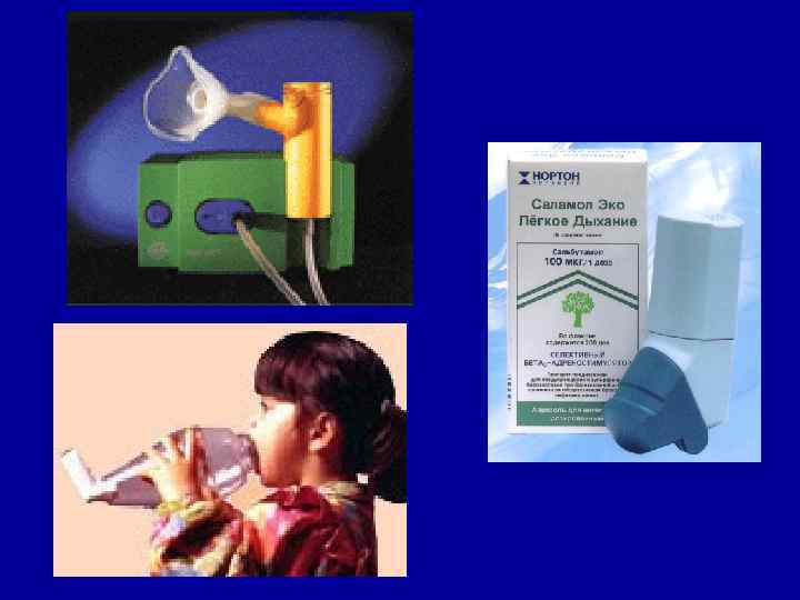 Бронхолитическая терапия • β 2 -адреномиметики (агонисты) (сальбутамол, фенотерол) • β 1 и β 2 адреномиметики (Астмопент) • М-холинолитики (Атровент) • Комбинированные препараты (беродуал) • Ингибиторы фосфодиэстераз (метилксантины) (эуфиллин, теофиллин)