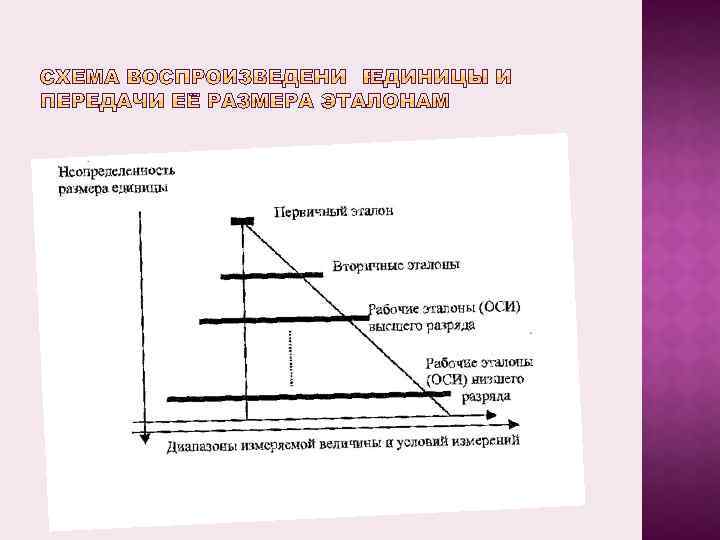 Первичным эталоном называют эталон, который воспроизводит единицу и передает ее размер вторичным эталонам. Схема иллюстрирует процесс, когда первичный эталон выполняет задачу воспроизведения единицы величины для ее использования при всех измерениях данной величины. Очевидно, что уровни точности наиболее ответственных метрологических и рабочих измерений определяются точностями первичных эталонов. Поэтому при создании первичных эталонов всегда стремятся обеспечить наиболее высокую точность, которую можно достигнуть на данном этапе развития науки и техники. После воспроизведения единицы ее размер по иерархической цепочке эталонов доводится до каждого эталона.