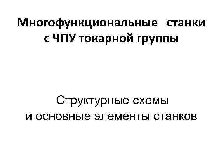 Многофункциональные станки с ЧПУ токарной группы Структурные схемы и основные элементы станков