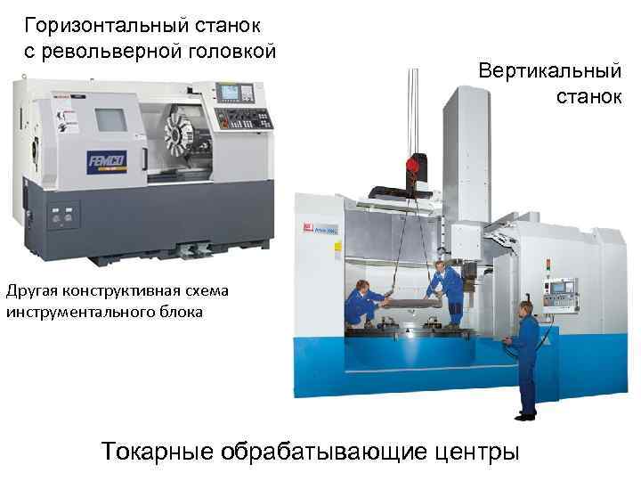 Горизонтальный станок с револьверной головкой Вертикальный станок Другая конструктивная схема инструментального блока Токарные обрабатывающие центры