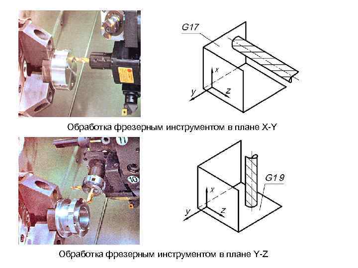 Обработка фрезерным инструментом в плане X-Y Обработка фрезерным инструментом в плане Y-Z