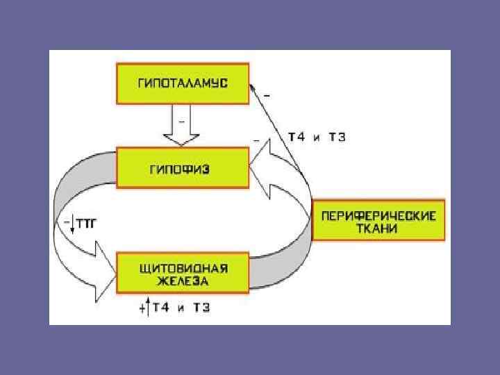 К состояниям, приводящим к снижению содержания ТТГ относятся: • • • Нетироидные хронические или острые заболевания Различные депрессивные состояния Недостаточность питания, длительное голодание Беременность на ранних сроках развития Гиперкортицизм Прием различных лекарственных препаратов (дофамин, глюкокортикоиды) Повышение уровня св. Т 3 и св. Т 4 • На фоне использования гепарина • На фоне использования фуросемида • На фоне использования аспирина • При ХПН Происходит вытеснение тироидных гормонов из их комплекса с альбумином