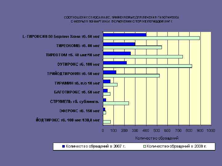 Препараты иода • Ингибиторы органификации иода ЩЖ, периферического превращения Т 4 в Т 3. Через 10 -14 дней щитовидная железа «ускользает» от ингибиторного эффекта иодида • Применяются: Ø при тиротоксическом кризе Ø при подготовке к хирургическому лечению тиротоксикоза Ø в качестве дополнительной терапии, через 7 дней после применения лечебных доз радиоактивного иода • Используются: Ø раствор Люголя или насыщенный раствор иодида К (5 кап. 2 раза в сутки) Ø Ораграфин, телепак (0, 5 -1 г 1 раз в сутки)