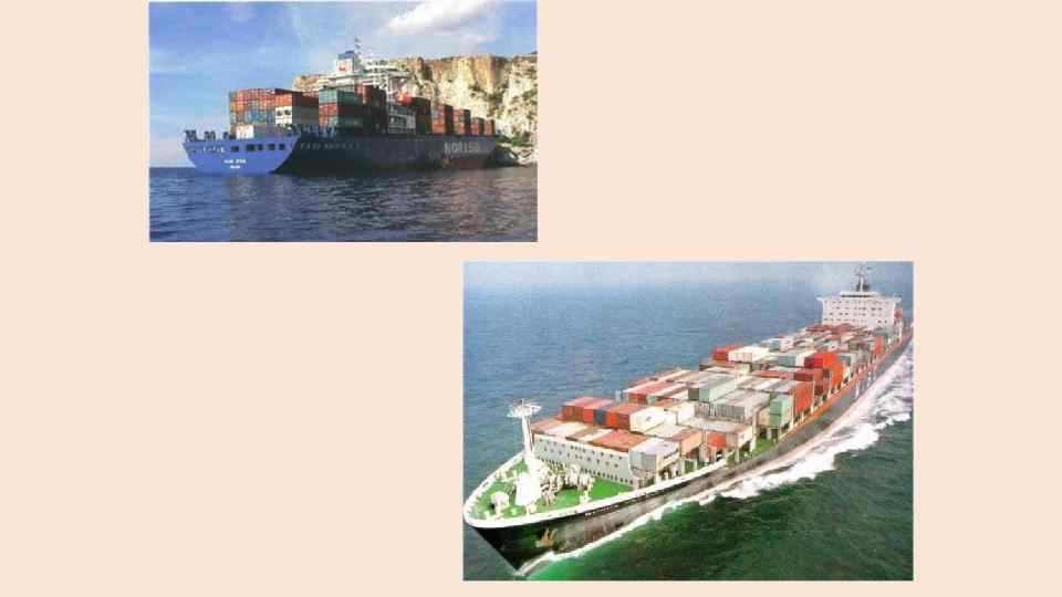 • Морские и речные суда, используемые для контейнерных пе ревозок, представляют собой суда универсальные, суда площад ки, контейнеровозы. • Универсальные суда применяются для перевозки контейне ров и генеральных грузов с полной или частичной загрузкой их контейнерами. • Суда площадки на внутреннем водном транспорте, как само ходные, так и несамоходные, используются частично или полно стью для перевозки контейнеров, как правило, с установкой их в один ряд, что крайне неэффективно. • Контейнеровозы — это специализированные грузовые суда с размерами трюмов, кратными габаритам стандартных контей неров. Они бывают океанские, фидерные морские и речные. Все контейнеровозы позволяют устанавливать контейнеры в несколь ко ярусов по высоте.