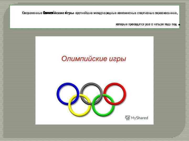 Современные Олимпи йские и гры крупнейшие международные комплексные спортивные соревнованния, — которые проводятся раз в четыре года под .
