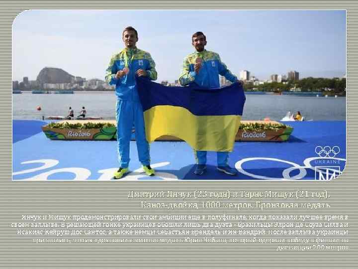 Дмитрий Янчук (23 года) и Тарас Мищук (21 год). Каноэ-двойка, 1000 метров. Бронзовая медаль Янчук и Мищук продемонстрировали свои амбиции еще в полуфинале, когда показали лучшее время в своем заплыве. В решающей гонке украинцев обошли лишь два дуэта - бразильцы Элрон Де Соуза Силва и Исакияс Кейруш Дос Сантос, а также немцы Себастьян Брендель и Ян Вандрэй. После заплыва украинцы признались, что их вдохновила золотая медаль Юрия Чебана, который одержал победу в финале на дистанции 200 метров.