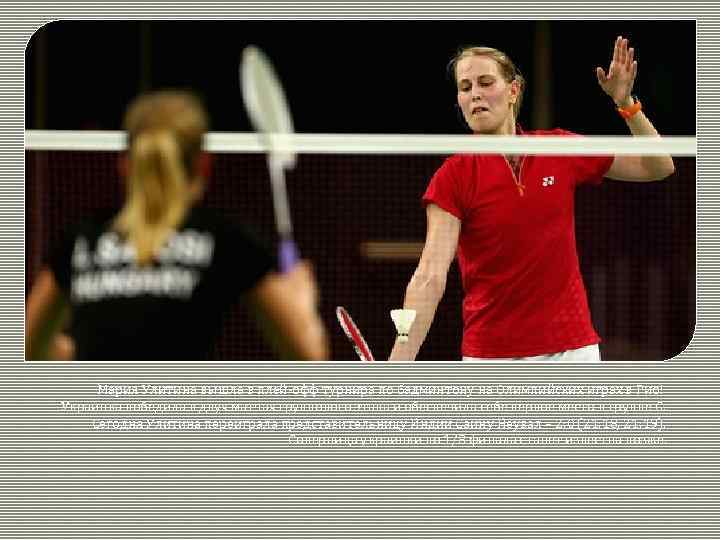 Мария Улитина вышла в плей-офф турнира по бадминтону на Олимпийских играх в Рио! Украинка победила в двух матчах группового этапа и обеспечила себе первое место в группе G. Сегодня Улитина переиграла представительницу Индии Саину Неувал – 2: 0 (21: 18, 21: 19). Соперница украинки по 1/8 финала станет известна позже.