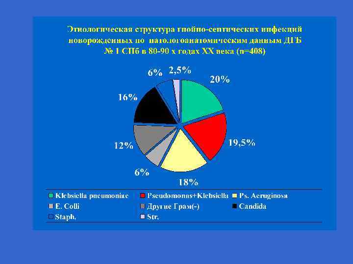 ЧАСТОТА СЕПСИСОВ НА АУТОПСИЙНОМ МАТЕРИАЛЕ ДГБ № 1 СПб 1994 -2000 ГОДЫ (на 1316 вскрытий 143 сепсиса) С. Д. Попов 1994 1995 1996 1997 1998 1999 2000 7% 14% 12% 13% 8% 10% 12%