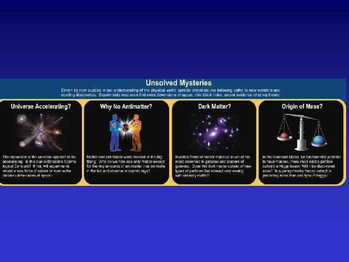 Стандартная модель не является теорией всего, так как не описывает тёмную материю, тёмную энергию и не включает в себя гравитацию. Экспериментальное подтверждение существования промежуточных векторных бозонов в середине 80 -ых годов завершило построение Стандартной модели и её принятие как основной.