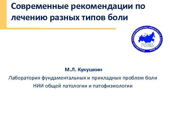 Современные рекомендации по лечению разных типов боли М. Л. Кукушкин Лаборатория фундаментальных и прикладных проблем боли НИИ общей патологии и патофизиологии