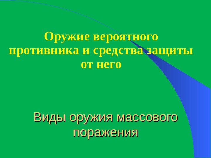 Виды оружия массового поражения. Оружие вероятного противника и средства защиты от него