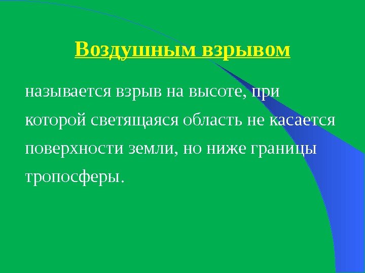 называется взрыв на высоте, при которой светящаяся область не касается поверхности земли, но ниже границы тропосферы. Воздушным взрывом