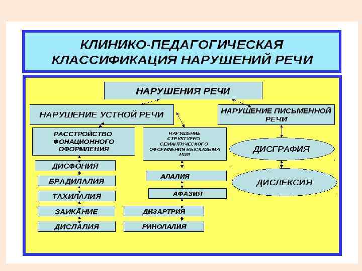 При обосновании логопедического заключения следует опираться на две основные классификации нарушений речи в логопедии: • клинико-педагогическую • психолого-педагогическую