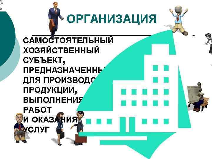 Признаки организации • Организация –объединение людей, чья совместная деятельность сознательно координируется ради достижения общей цели или совокупности целей • Наличие совокупности целей • Совместная деятельность • Особая система орг. отношений • Управление • Технологичность • Организационная культура