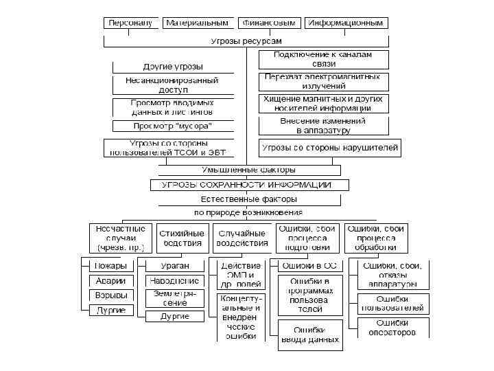 Угрозы ИБ • • • • – дополнительные расходы на персонал, обслуживающий технические средства обработки конфиденциальной информации, восстановление информации, возобновление работы информационных систем по сбору, хранению, обработке, контролю данных, в том числе расходы: • на поддержку информационных ресурсов ТСОИ; • обслуживающий персонал, не связанный с обработкой информации; • специальные премии, расходы на перевозку и др. ; – эксплуатационные потери, связанные с ущербом банковских интересов или финансовыми издержками, потерей клиентов, заказчиков, требующие дополнительных расходов на восстановление: банковского доверия; размеров прибыли; утерянной клиентуры; доходов организации и др. ; • утрата фондов или порча имущества, не подлежащего восстановлению, которые снижают финансовые возможности (деньги, ценные бумаги, денежные переводы и др. ); • расходы и потери, связанные с возмещением морального ущерба, обучением, экспертизой и др.