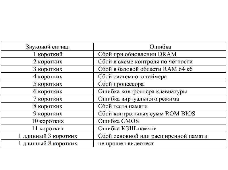 Если у вас рабочие видеокарта и монитор, то ПК, как правило, дополнительно выводит на экран цифровой код ошибки. Таких кодов сотни, для разных типов BIOS они различные, но по первой цифре кода, (как правило - трехзначного), можно определить в каком устройстве произошел сбой. Коды 100 и выше означают сбои в работе системной платы; 200 - ошибки RAM; 300 - ошибки клавиатуры; 400 -500 - сбои в работе дисплея или принтера; 600 - ошибки НГМД; 700 - ошибки в работе математического сопроцессора; 900 - ошибки тестирования параллельного принтера; 1700 - ошибки в цепях жесткого диска.