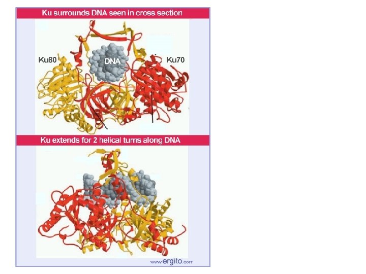 Механизм работы Ø Белковые ножницы, содержащие две копии белка Uvr. A и одну копию Uvr. B, узнают поврежденный участок и присоединяются к нему. Ø Энергия АТР используется, чтобы изогнуть молекулу ДНК и изменить конформацию белка Uvr. B; димер Uvr. A отсоединяется.