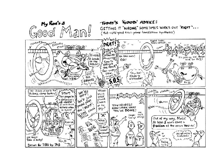 Ошибки репликации Точность процесса репликации определяется: 1. Различиями в свободной энергии у канонических или ошибочных пар азотистых оснований ДНК, образующихся по правилам Уотсона– Крика в водных растворах (различия порядка 1– 3 ккал/моль и обеспечивают точность 1 ошибка на каждые 100 нуклеотидов). 2. Наличием свойственной многим бактериальным и эукариотическим ДНК-полимеразам 3’ 5’-экзонуклеазной корректирующей активности (ошибочно включенные нуклеотиды, некомплементарные матрице, удаляются с 3’-конца растущей цепи ДНК перед включением следующего нуклеотида в строящуюся цепь ДНК). Ø Таким образом точность функционирования ДНК-полимераз не является абсолютной, а зависит от взаимодействия белков и ферментов системы репликации и матричной ДНК. Изменение свойств этих белков или матрицы как спонтанно, так и под действием различных модифицирующих агентов приводит к ошибкам в репликации ДНК и мутациям.