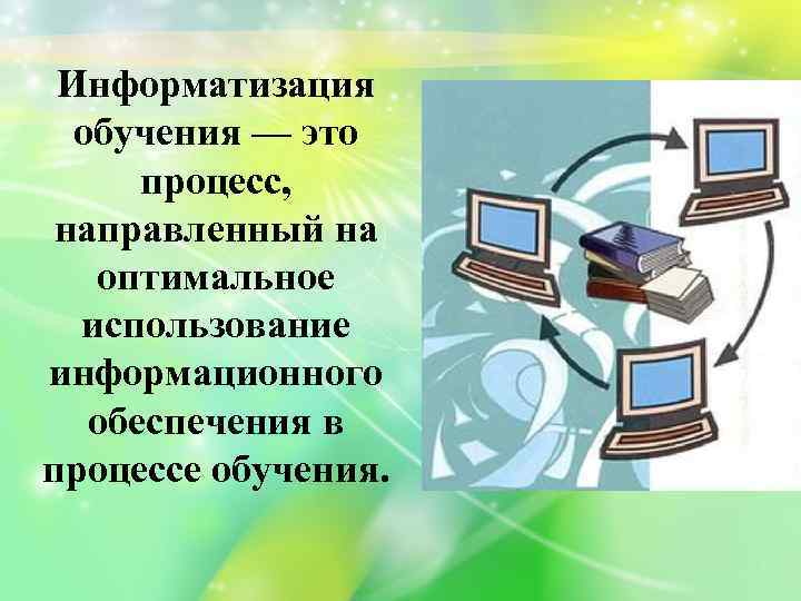 Информатизация обучения — это процесс, направленный на оптимальное использование информационного обеспечения в процессе обучения.