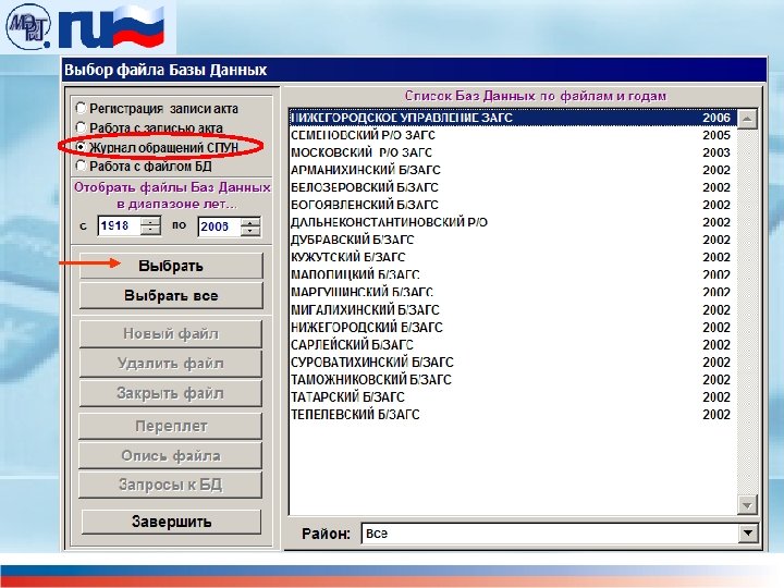 Выбор отдела ЗАГС
