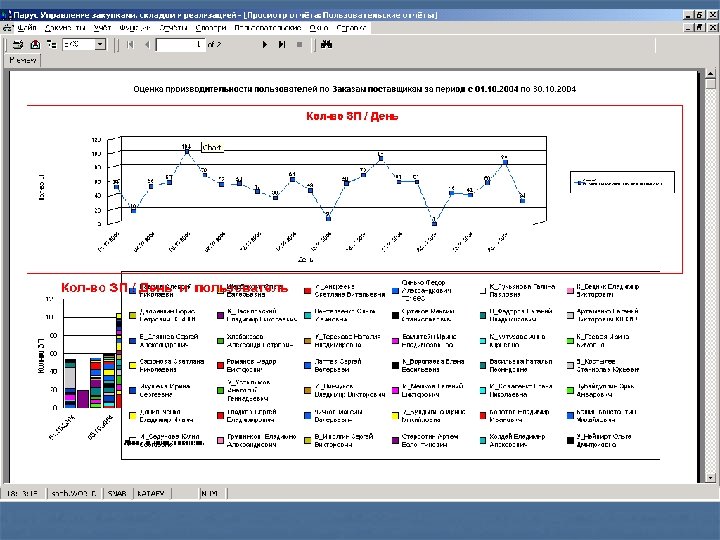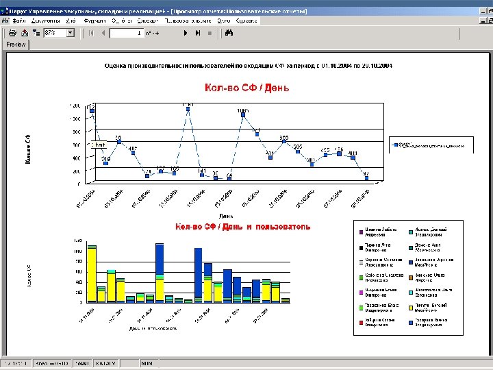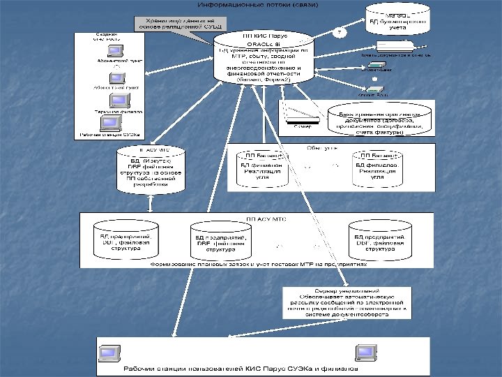 Количественные показатели документооборота 1. Количество действующих договоров – > 3500 n 2. Заказы потребителей – помесячные планы и корректировочные – > 2300 n 3. Максимальное количество позиций( номенклатуры в одном документе планового заказа) – около 3000 n 4. Количество оформляемых заказов поставщикам в месяц – 1500 n 5. Количество распоряжений на оплату в месяц – >2600 n 6. Количество обрабатываемых СФ в месяц – n Снабжение МТР – входящих СФ – >2300, исходящих СФ ->2300 n Сбыт угля – >5000 n 7. Количество отчетов разного назначения – >150 n 8. Количество автоматически формируемых и направляемых писем через сервер уведомлений - > 1 000 в сутки.