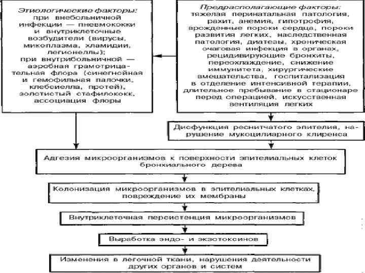 Этиология: Чаще всего причиной воспаления легких являются такие бактерии, как пневмококки и стрептококки. В почти половине случаев пневмонию вызывают вирусы(дети, старики).